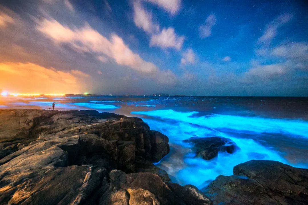 在福建平潭拍攝的“藍(lán)眼淚”。新華社發(fā)(念望舒 攝)