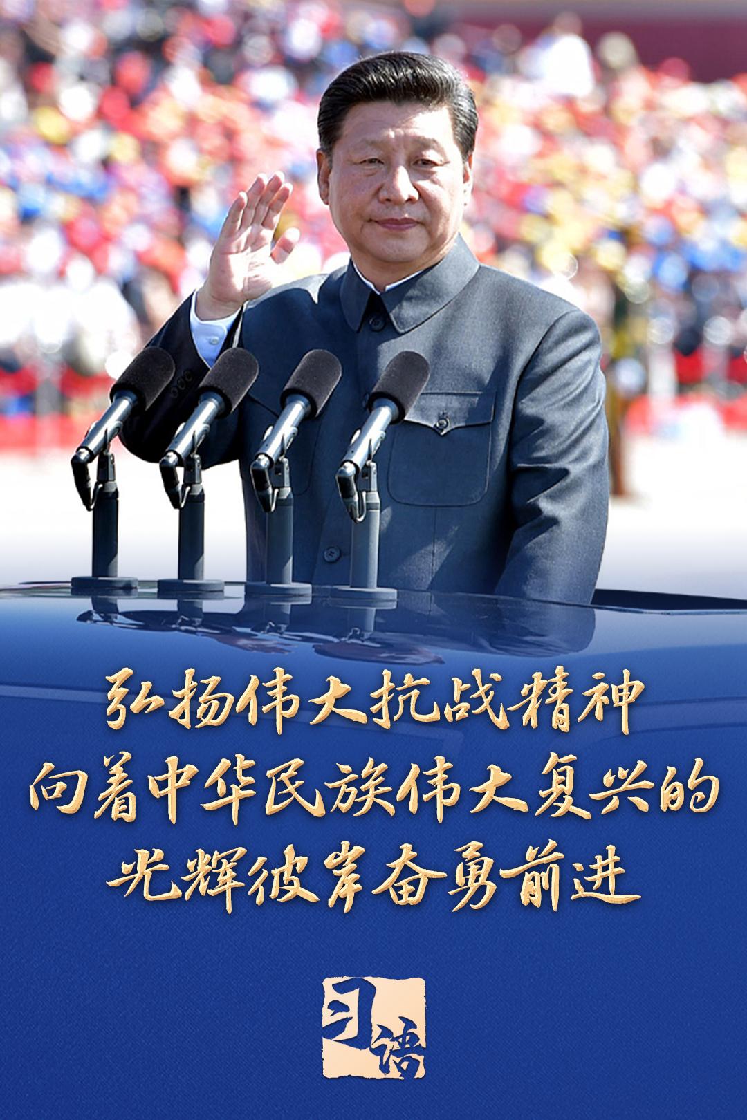 “偉大抗戰(zhàn)精神,是中國(guó)人民彌足珍貴的精神財(cái)富,將永遠(yuǎn)激勵(lì)中國(guó)人民克服一切艱難險(xiǎn)阻、為實(shí)現(xiàn)中華民族偉大復(fù)興而奮斗。”