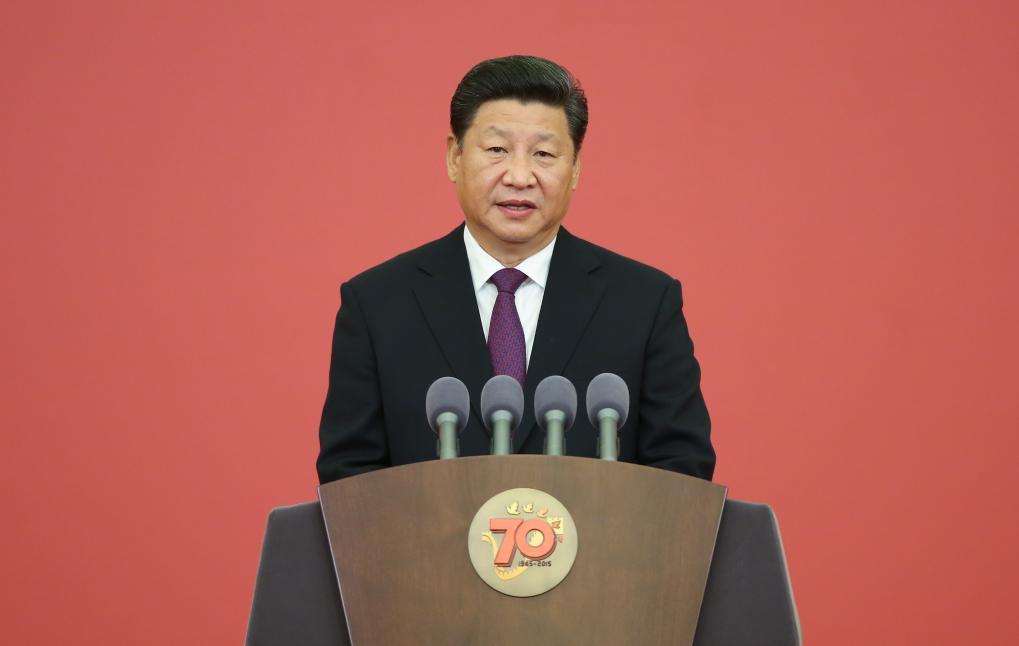 2015年9月,中國(guó)人民抗日戰(zhàn)爭(zhēng)勝利70周年紀(jì)念章頒發(fā)儀式在北京人民大會(huì)堂隆重舉行。習(xí)近平總書記發(fā)表重要講話。新華社記者 龐興雷 攝