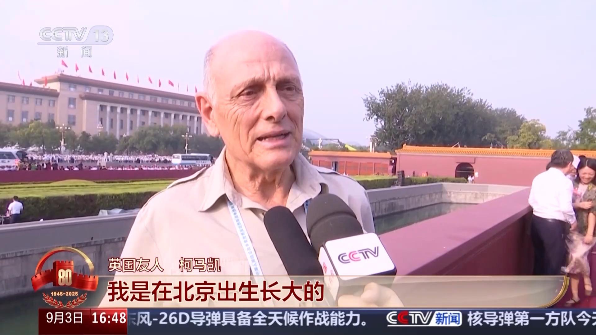 英國友人 柯馬凱:我是在北京出生長大的,我多次到天安門廣場參加各種活動。中國在國際上發(fā)揮的作用是幫助追求和平、阻止戰(zhàn)爭,我覺得不像有些國家見了戰(zhàn)爭就得站隊,而中國是去參與調停。和平發(fā)展是人民群眾最需要的。