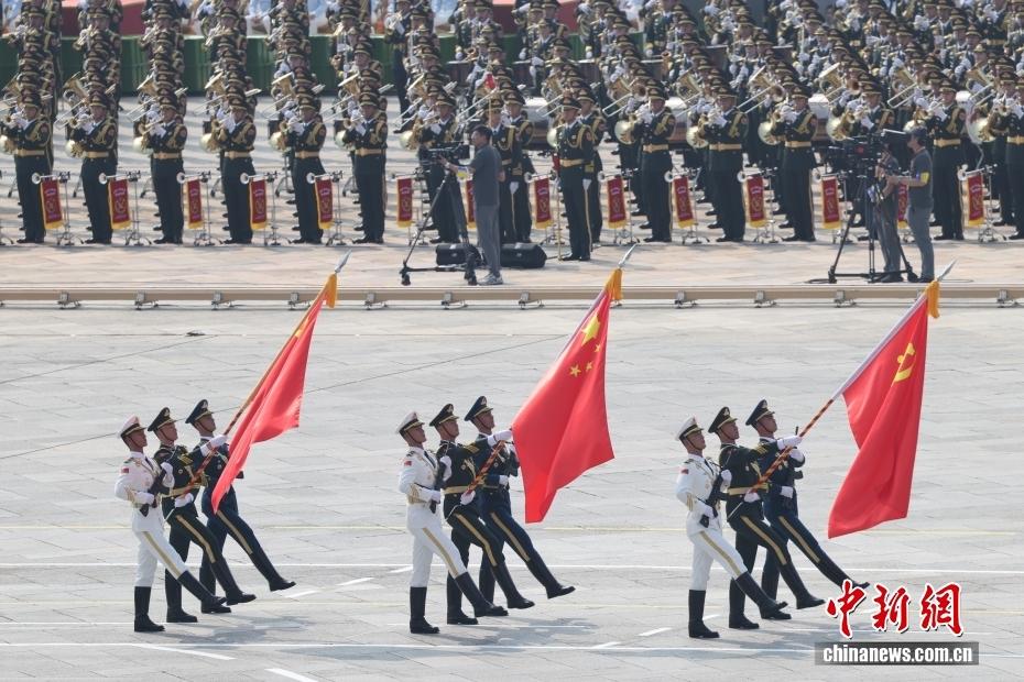 圖為中國人民解放軍儀仗方隊接受檢閱。中新社記者 盛佳鵬 攝