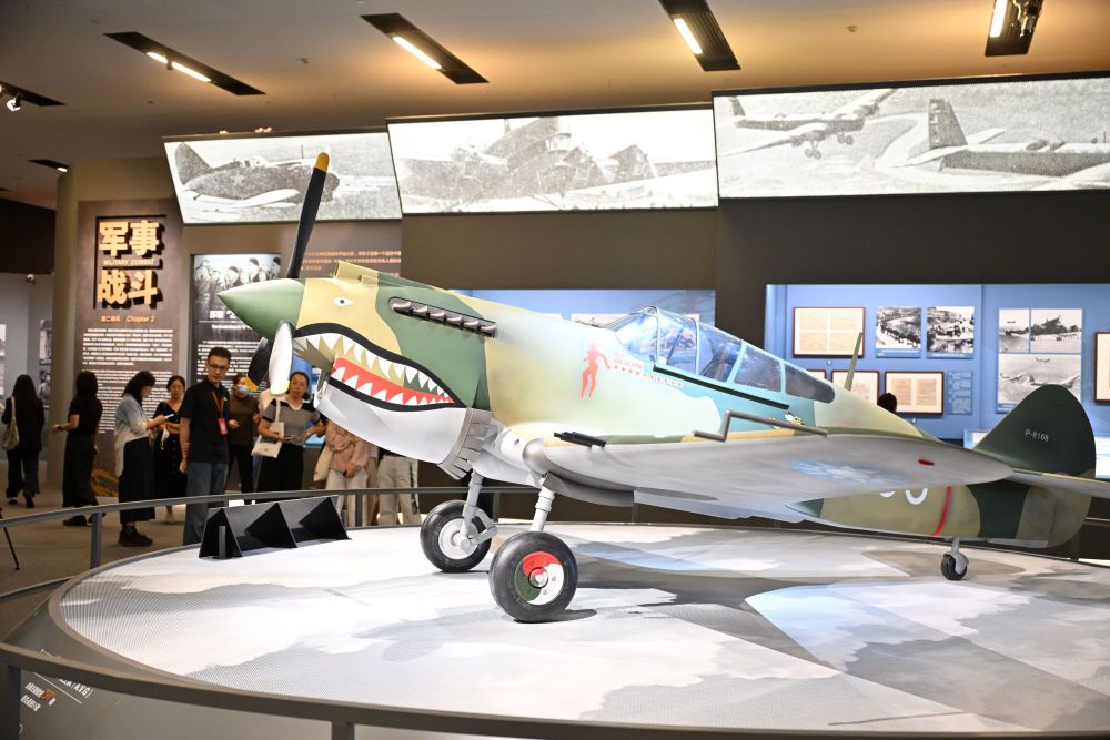 這是在中國國家博物館展出的"飛虎隊"P-40戰(zhàn)斗機模型(9月7日攝)。新華社記者 金良快 攝