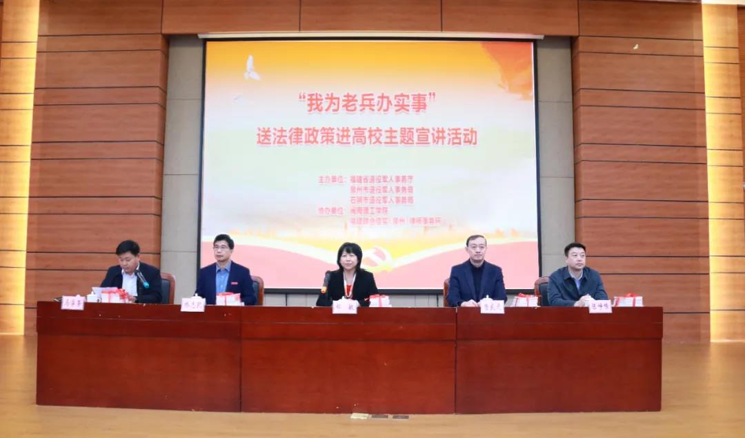 12月6日上午,由福建省退役軍人事務(wù)廳、泉州市退役軍人事務(wù)局和石獅市退役軍人事務(wù)局聯(lián)合舉辦的“我為老兵辦實(shí)事”法律政策進(jìn)高校主題宣講活動(dòng)在閩南理工學(xué)院舉行。省退役軍人事務(wù)廳副廳長鄭敏出席并致辭。泉州市退役軍人事務(wù)局、石獅市退役軍人事務(wù)局和閩南理工學(xué)院等相關(guān)領(lǐng)導(dǎo)參加活動(dòng)。