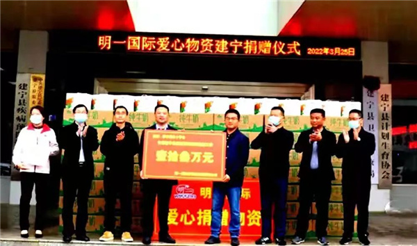 明一國際營養(yǎng)品集團有限公司向三明市建寧縣紅十字會捐贈價值13.76萬元的純牛奶和奶粉,用于慰問醫(yī)療部門、交通卡點、社區(qū)志愿者等一線抗疫人員。