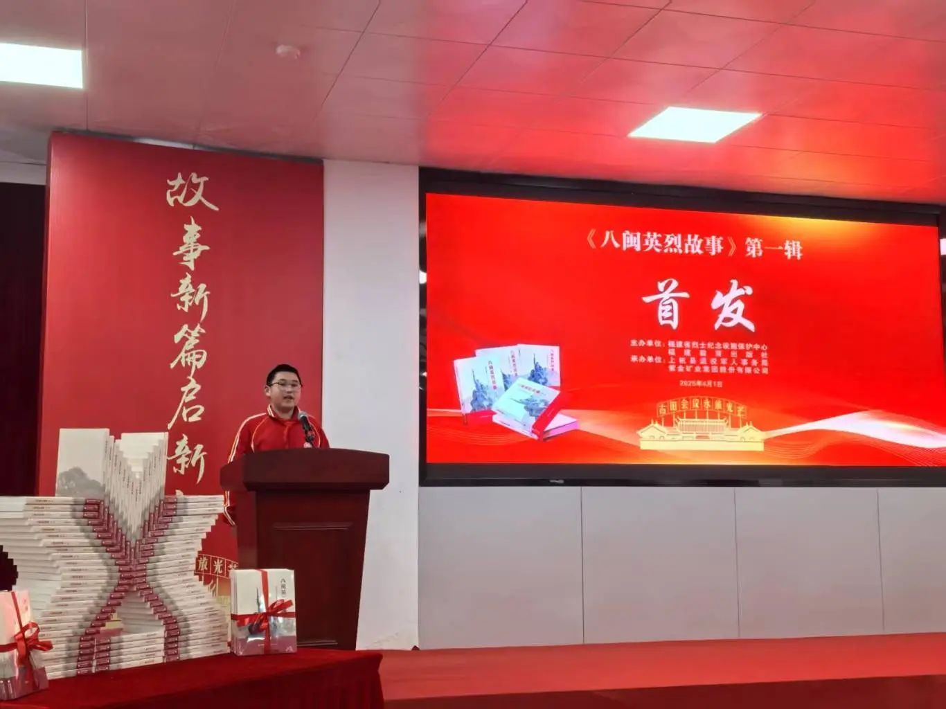 4月1日上午,由福建省烈士紀(jì)念設(shè)施保護(hù)中心、福建教育出版社主辦,上杭縣退役軍人事務(wù)局、紫金礦業(yè)集團(tuán)承辦的《八閩英烈故事》第一輯首發(fā)暨第二輯編撰啟動儀式在福建省上杭縣舉行。退役軍人事務(wù)部烈士紀(jì)念設(shè)施保護(hù)中心主任許航宇、省退役軍人事務(wù)廳黨組書記、廳長羅慶春、海峽出版發(fā)行集團(tuán)董事長黃葦洲、龍巖市委副書記楊溢、省委黨史方志辦原一級巡視員王盛澤、《八閩英烈故事》作者之一何英以及省退役軍人關(guān)愛基金會和省退役軍人關(guān)愛協(xié)會負(fù)責(zé)人等應(yīng)邀出席儀式,上杭縣有關(guān)單位、擁軍企業(yè)、軍烈屬及學(xué)生代表等約200人參加活動。
