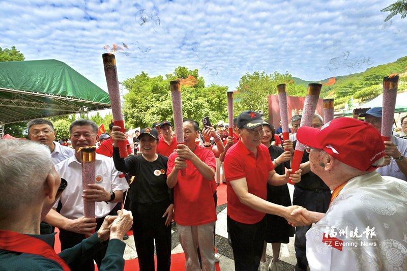 101歲的陳世明和97歲的姜汝煥引出火種,為9位抗日志士后人點(diǎn)燃火炬。 追憶往昔 話傳承使命 歷史的記憶需要實(shí)體的承載,精神的傳承需要后人的接續(xù)。 福建省政協(xié)副秘書長、臺(tái)盟福建省委會(huì)專職副主委許勇鐵代表活動(dòng)主辦方在致辭中說:“偉大的抗戰(zhàn)精神,是中國人民彌足珍貴的精神財(cái)富,更是兩岸同胞共同的歷史記憶與精神紐帶。” 老紅軍、抗戰(zhàn)時(shí)期八路軍120師排長王玉清之子王寧表示:“兩年前,103歲的父親謝世。去世時(shí),他唯一的遺憾是沒有看到兩岸統(tǒng)一。作為兒子,我覺得對(duì)父親最好的告慰,就是傳承紅色基因,繼承和發(fā)揚(yáng)革命精神。兩岸統(tǒng)一那天,我一定會(huì)到這里告慰九泉之下的父親,這是他最想聽到的好消息,實(shí)現(xiàn)中華民族偉大復(fù)興是父親一生奮斗的目標(biāo)?!?/p> “抗戰(zhàn)時(shí)期,旅居菲律賓的愛國華僑以捐款、捐飛機(jī)、組團(tuán)回國參戰(zhàn)等實(shí)際行動(dòng)積極支持祖國的抗日戰(zhàn)爭,并且成立了唯一的一支海外抗日武裝——菲律賓華僑抗日游擊支隊(duì),與菲律賓人民并肩打擊日本侵略者……”菲律賓華僑抗日游擊支隊(duì)第五大隊(duì)指導(dǎo)員郭鋼之子郭建安作為海外華僑抗日志士后人代表發(fā)言,講述先輩們的熱血故事,展現(xiàn)了海外僑胞的家國情懷和國際主義精神。 “抗戰(zhàn)勝利,臺(tái)灣光復(fù);山河同氣,永續(xù)傳承?!碑?dāng)天,臺(tái)灣抗日志士后人與大陸創(chuàng)作者聯(lián)合手書的作品寄至現(xiàn)場,并捐贈(zèng)給三山人文紀(jì)念園收藏。臺(tái)灣著名詩人、書法家陳志聲創(chuàng)作的詩詞也同步捐贈(zèng)。