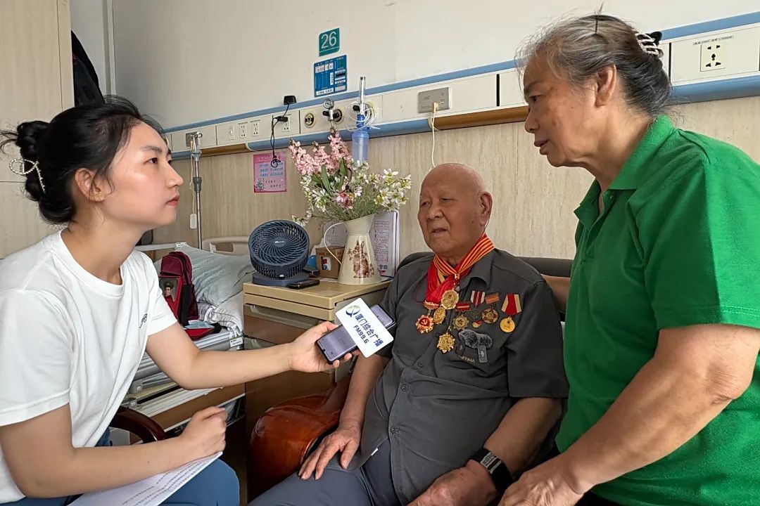 編者按: 為紀(jì)念中國人民抗日戰(zhàn)爭暨世界反法西斯戰(zhàn)爭勝利80周年,深入挖掘抗戰(zhàn)老兵事跡,傳承紅色基因,省退役軍人事務(wù)廳聯(lián)合各地市退役軍人事務(wù)部門開展走進(jìn)抗戰(zhàn)老兵家庭,重溫抗戰(zhàn)歷史系列活動。廳官網(wǎng)官微開辟“致敬抗戰(zhàn)老兵”專欄對此進(jìn)行系列宣傳,今日推出《蓋鴻儒:山河守望,紛飛戰(zhàn)火中永不褪色的記憶》的故事。 在廈門大學(xué)附屬中山醫(yī)院病房里,記者見到了抗戰(zhàn)老兵蓋鴻儒。他穿著一件深灰色襯衫,面容和藹,笑瞇瞇地跟我們打招呼。雖然腿腳不便,但已近百歲的蓋爺爺聲音依舊洪亮,操著一口濃重的“山東味兒”普通話。