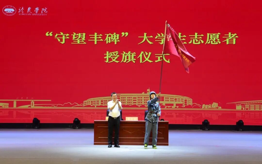 簽約儀式上,鐘發(fā)亮書記表示,龍巖學院將進一步發(fā)揮學科、人才優(yōu)勢,加強英烈精神研究,深化史料整理與保護,積極傳承好、發(fā)揚好英烈精神,為退役軍人事務高質(zhì)量發(fā)展貢獻高校力量。羅慶春廳長感謝龍巖學院立足閩西紅土地,組織大學生開展紅色守護與英烈精神宣傳研究,表示開展廳校合作對于雙方實現(xiàn)優(yōu)勢互補、共同傳承紅色基因具有重要意義,強調(diào)要把“紙面上的東西”變到“落地生根的實踐”,產(chǎn)出實實在在的價值。隨后,省退役軍人事務廳黨組成員、副廳長蔡靜南與龍巖學院黨委副書記陳立紅,代表雙方簽署了共建協(xié)議;羅慶春廳長為“守望豐碑”大學生志愿者代表授旗;省退役軍人事務廳向龍巖學院捐贈100冊《八閩英烈故事(第一輯)》書籍。