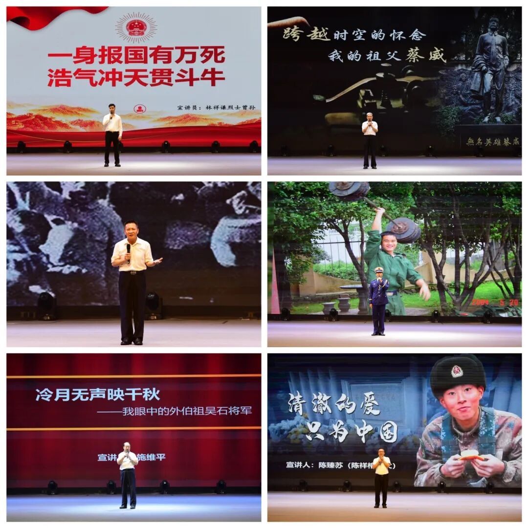 “烈士親友講烈士故事”宣講會上,龍巖學院的師生共同見證“烈士親友講烈士故事”主題歌《講你的故事》正式向公眾發(fā)布。學生們的傾情朗誦和青年歌唱家付帥的深情演唱,感染激勵了在場的每一位觀眾。隨后,林祥謙烈士曾孫林樹坦、蔡威烈士孫子蔡述波、吳石烈士外侄孫施維平、陳祥榕烈士堂伯陳臻蘇、陳炳壽烈士孫子陳文云、鄭忠華烈士戰(zhàn)友莊志樹等六位宣講員,先后飽含深情地講述了英烈們的感人故事。由龍巖市退役軍人事務局選送、市山歌劇傳習中心演繹的英烈情景劇《祁連山上杜鵑開》,再現(xiàn)了閩西長征女杰吳富蓮烈士舍生取義斗頑敵的悲壯情景,為師生上了一堂生動的英烈主題思政課。
