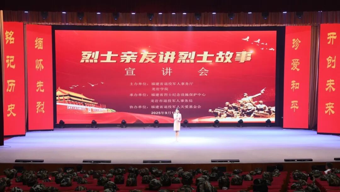 在“九一八”事變爆發(fā)94周年、并將迎來第12個國家烈士紀念日之際,9月18日上午,省退役軍人事務廳與龍巖學院舉行廳校共建協(xié)議簽約儀式,并開展“烈士親友講烈士故事”宣講活動,以實際行動學習貫徹習近平總書記在紀念中國人民抗日戰(zhàn)爭暨世界反法西斯戰(zhàn)爭勝利80周年大會上重要講話精神,激勵干部群眾和青年學子“銘記歷史、緬懷先烈、珍愛和平、開創(chuàng)未來”。省退役軍人事務廳黨組書記、廳長羅慶春,廳黨組成員、副廳長蔡靜南和龍巖學院黨委書記鐘發(fā)亮、校長鄒衛(wèi)東等廳校雙方領(lǐng)導出席,省退役軍人關(guān)愛基金會、省烈士紀念設施保護中心、龍巖市退役軍人事務局相關(guān)負責同志、六位烈士親友宣講員,以及龍巖學院師生代表1000多人參加活動。