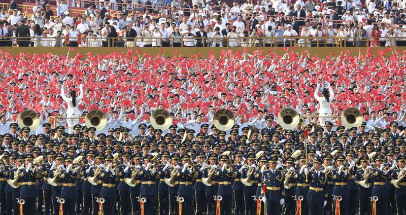 △2025年9月3日,紀(jì)念中國人民抗日戰(zhàn)爭(zhēng)暨世界反法西斯戰(zhàn)爭(zhēng)勝利80周年大會(huì)在北京隆重舉行。這是中國人民解放軍聯(lián)合軍樂團(tuán)和合唱團(tuán)。