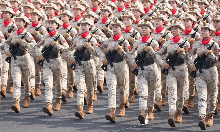 9月3日,天安門廣場。身著蛙式作訓(xùn)服、手握鋼槍的女民兵,身姿挺拔、英姿颯爽。她們來自當(dāng)年的主要抗日根據(jù)地。這是民兵首次亮相以紀(jì)念抗戰(zhàn)為主題的閱兵活動。