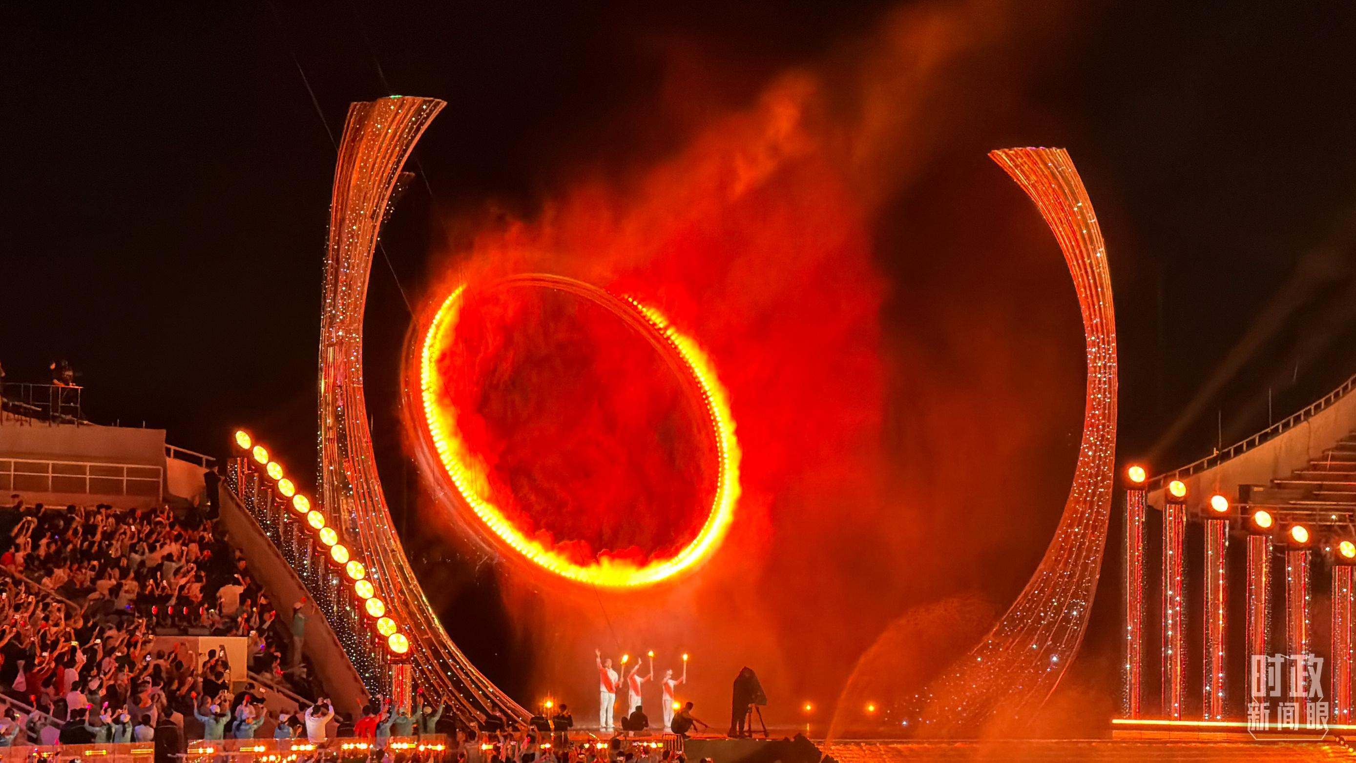 △第十五屆全運會主火炬點燃環(huán)節(jié)。(總臺央視記者范一鳴、蔣碩拍攝)