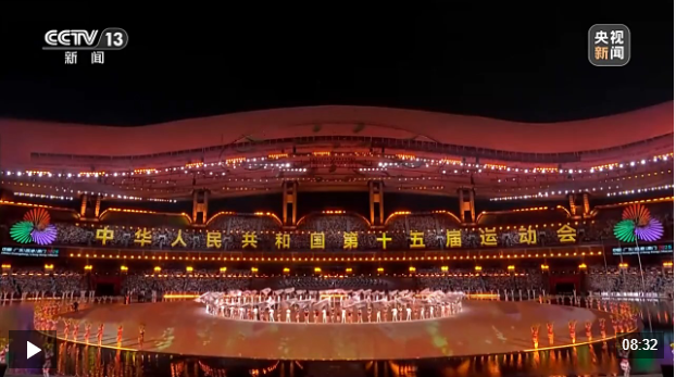 △第十五屆全運會開幕式現(xiàn)場。(總臺記者李晉拍攝)