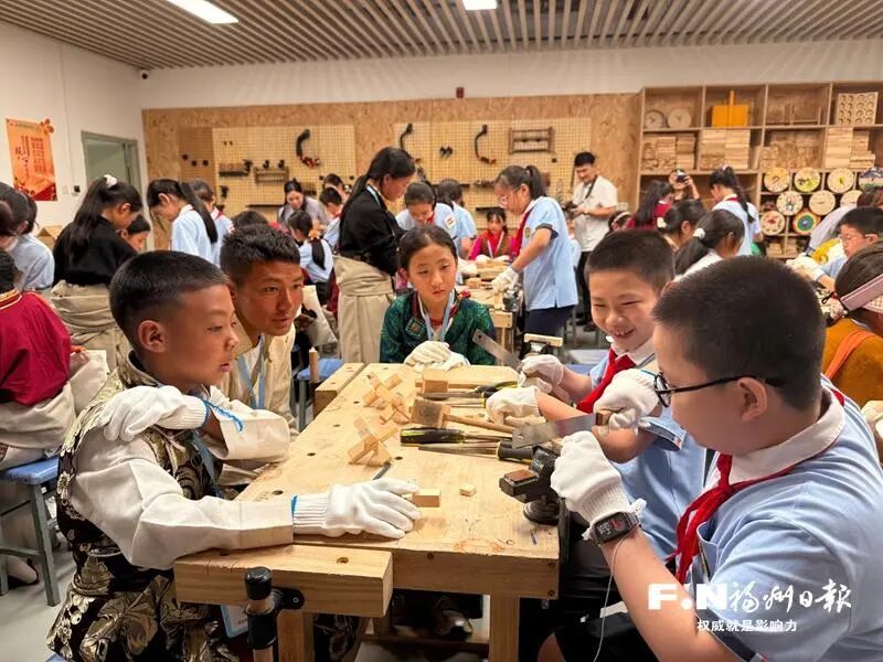 兩地青少年一同體驗木工技藝。記者 馮雪珠 攝 20日下午,在福州市援藏工作隊帶領下,西藏八宿縣師生一行37人走進福州教育學院附屬第一小學(以下簡稱“一附小”),參觀體驗此次來榕交流活動的第一所學校。 大巴還未停穩(wěn),來自八宿縣的學生就迫不及待地掀開車窗簾,露出好奇的眼睛。學校內(nèi),伴隨著《茉莉花》的歌聲,一附小師生鼓掌熱烈歡迎來自遠方的客人。 學習機器人編程,觀看無人機表演,體驗陶藝木藝……在一附小,來自八宿縣的中小學學生代表與一附小學生一道,在互動活動中感受學校的特色教育理念及教學模式,收獲滿滿。 “今天是來福州的第一天,這里濕潤的空氣和滿眼的翠綠,與家鄉(xiāng)的遼闊蒼茫是完全不一樣的景致?!眮碜园怂蘅h的中學生洛松貢布說,進入校園后,他們立刻被老師和同齡人熱情包圍著。 據(jù)悉,交流活動為期9天。接下來,八宿縣師生代表還將參觀體驗福州市英才學校、倉山小學、金山小學,深度體驗福州教育實踐,還將前往福州市圖書館、福州市科技館、中國船政文化博物館以及三坊七巷、上下杭等地,感受現(xiàn)代福州與閩都文化的魅力。(記者 馮雪珠) |
