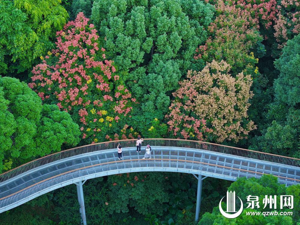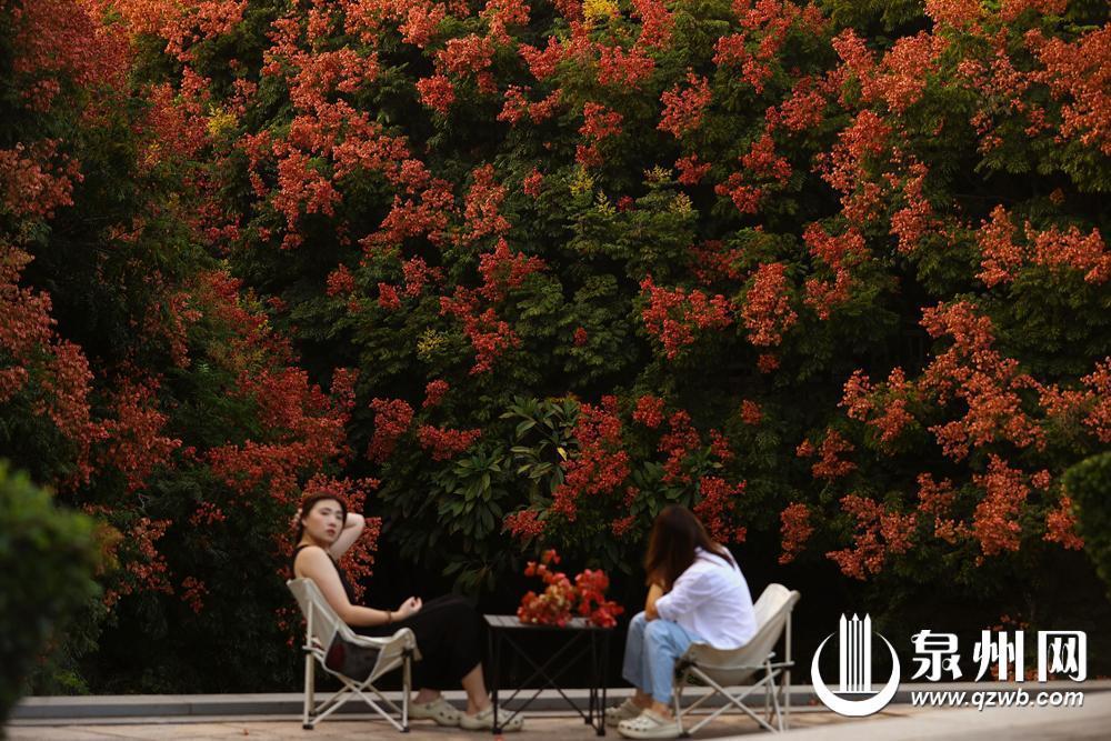 秋日里,泉州市區(qū)大坪山藏著一場不期而遇的色彩盛宴。近日,山上的五彩欒樹進(jìn)入盛花期,細(xì)碎的黃花、鮮紅的果莢與翠綠的葉片交織,從山腳蔓延至山腰,宛如大自然打翻了調(diào)色盤,吸引不少市民專程登山打卡,朋友圈里滿是這片“秋日花?!钡纳碛?。 沿著大坪山健身步道向上走,未到山頂便被亮眼的色彩攔住腳步。近百株欒樹錯落分布在步道兩側(cè),樹干筆直挺拔,抬頭望去,樹冠像撐開的巨大花傘,細(xì)碎的金黃色小花綴滿枝頭,風(fēng)一吹便簌簌落下,鋪成一層“黃金地毯”?;ㄖx后結(jié)出的三角狀果莢,初時是淡綠色,漸漸染上粉紅、朱紅,最終變成深褐色,遠(yuǎn)遠(yuǎn)望去,像掛在枝頭的小燈籠,又似一串串五彩鈴鐺,在陽光下泛著光澤。金黃的花簇、火紅的燈籠果與爛漫的粉霞交織碰撞,鋪展出層次豐富的秋日畫卷——抬眼望去,一層青綠、一層鵝黃、一層緋紅、一抹輕粉,它們錯落交織于山間,與山頂巍然矗立的鄭成功騎馬塑像遙相呼應(yīng),歷史的氣韻與自然的生機(jī)彼此交融。(東南早報融媒體記者 林福龍 莊麗祥 通訊員 許曉嵐 文/圖) 欒樹花開成海,宛如大自然打翻了調(diào)色盤。 大坪山上欒樹花開成海 置身山中,盡享秋光。 欒樹花海邂逅漢服古韻 市民前來踏秋賞景 紅色果實(shí)酷似串串燈籠,盡顯生機(jī)。 多彩欒花遇上閩南紅 |