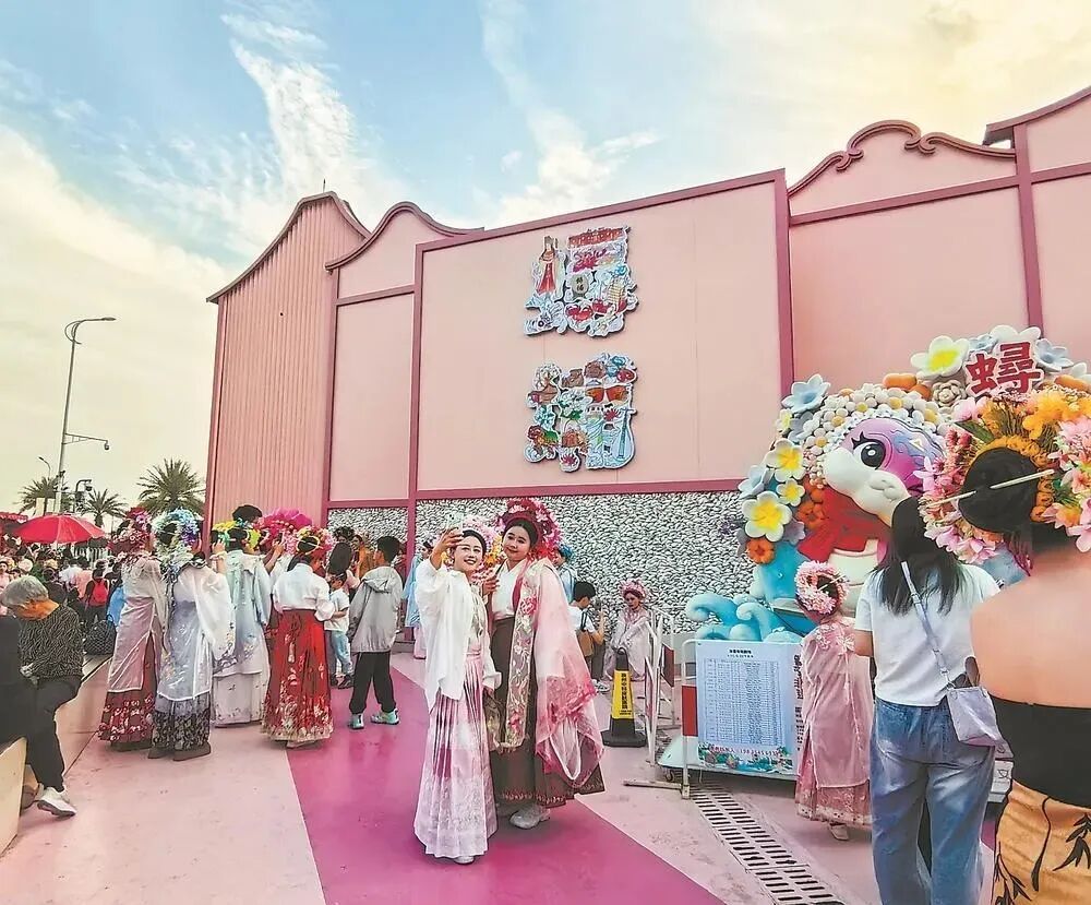 泉州灣畔的蟳埔村,這個枕海而居的千年漁村,隨著簪花圍走紅,成了游客的熱門打卡地。當?shù)厣钔谖幕瘍群?,推出海邊問浪、古巷尋幽、閩南聽音、梨園看戲、海鮮品鮮、文創(chuàng)樂購等體驗,讓游客變“走馬觀花”為“深度沉浸”。村里300多家旅拍店,緊跟年輕人的審美不斷升級服務:傳統(tǒng)花圍增添了馬卡龍色系,搭配的服飾融入了漢服、旗袍元素,老技藝和新時尚“牽手”,贏得了更高的人氣。今年1至7月,蟳埔村接待游客超426萬人次,帶動旅游消費突破8.6億元。