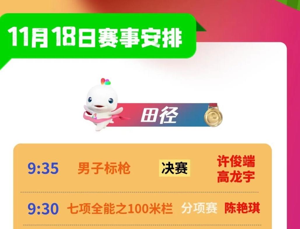 第十五屆全運(yùn)會(huì),正在如火如荼進(jìn)行中。11月18日,福建健兒將向多個(gè)項(xiàng)目發(fā)起獎(jiǎng)牌沖擊,一起來看看賽程表。[詳細(xì)]